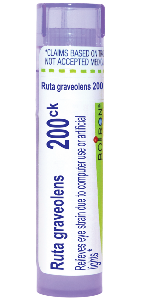 Customize your care with Boiron single medicines for highly targeted relief. Ruta Graveolens 200CK is a homeopathic medicine that relieves eye strain due to computer use or artificial lights.*The pellets melt in your mouth and can be taken on the go, no food or water needed. They come in an easy dispensing tube of approx. 80 pellets (16 doses). Boiron single medicines are ideal for adults and children and do not contain artificial colors, flavors, sweeteners, or preservatives. Always use according to the label instructions unless directed by your health care professional.With more than 90 years of expertise, Boiron is a trusted brand that prides itself on quality manufacturing and responsible environmental practices. All products are made according to the highest standards of cGMP and formulated with HPUS ingredients for purity.