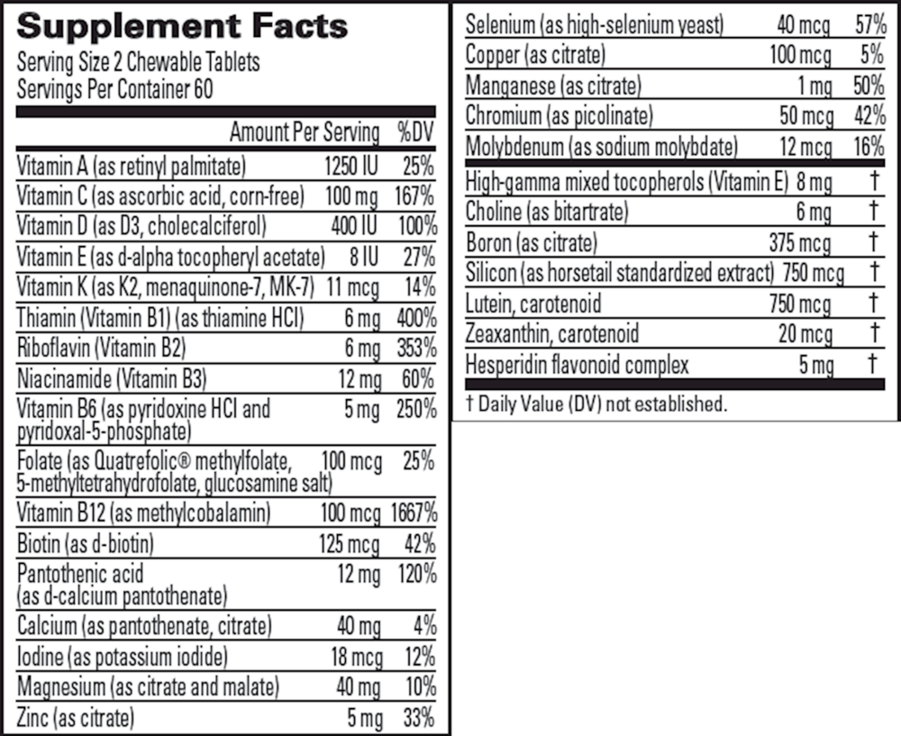 Suggested Use: Children ages 4-9, take 2 chewable tablets (1 serving) per 40 pounds of body weight daily; children older than 9 years, take 4 chewable tablets (2 servings) daily. Not intended for children younger than 4 years.