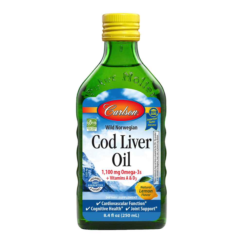 Carlson Cod Liver Oil has received numerous awards for its taste and quality. A single teaspoonful provides 1,100 mg of omega-3s, including EPA and DHA, which support heart, brain, vision, and joint health.* To ensure maximum freshness, Cod Liver Oil is closely managed from sea to store.