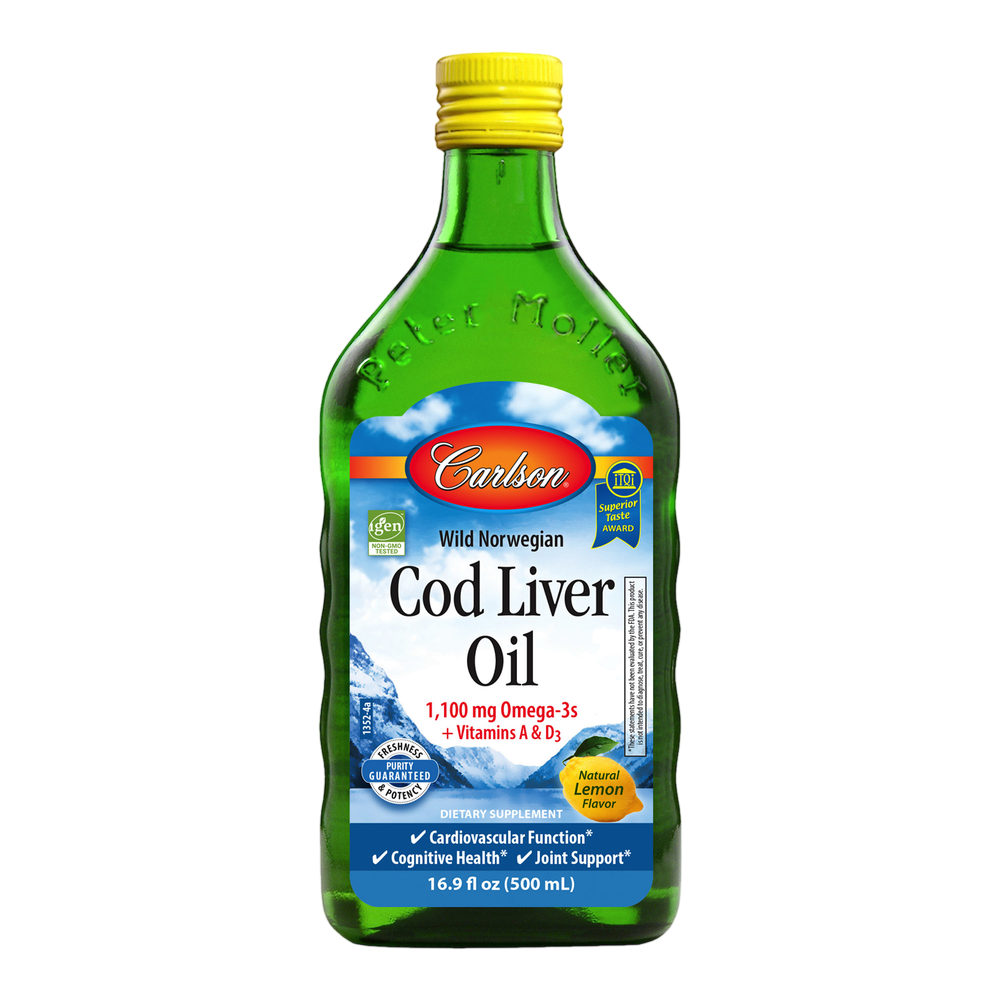 Carlson Cod Liver Oil has received numerous awards for its taste and quality. A single teaspoonful provides 1,100 mg of omega-3s, including EPA and DHA, which support heart, brain, vision, and joint health.* To ensure maximum freshness, Cod Liver Oil is closely managed from sea to store.