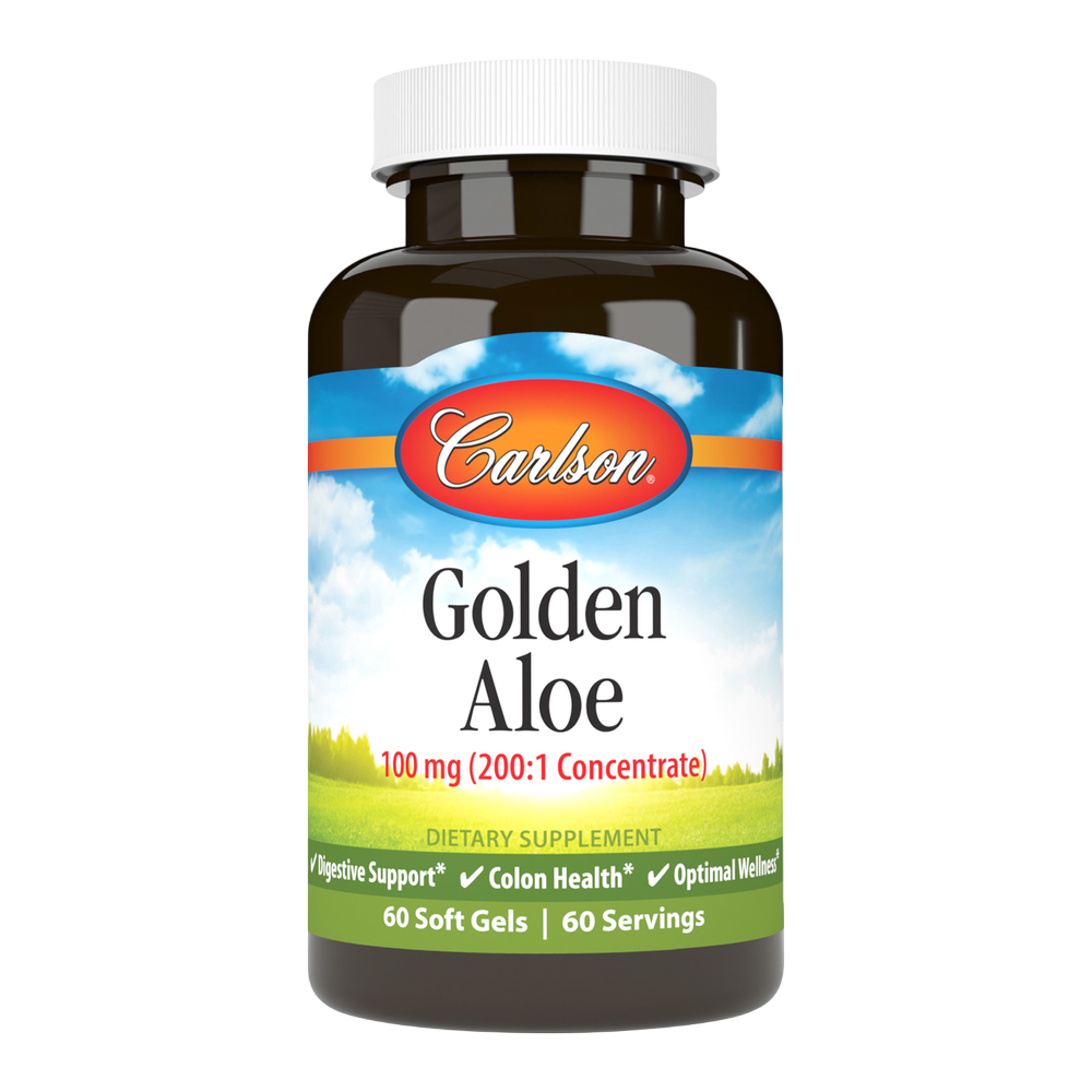 Aloe vera is a desert plant used for centuries for its healing properties. Golden Aloe contains the thick inner gel from the aloe vera leaf, which is freeze-dried to form a potent concentrate. Each soft gel contains 100 mg of aloe vera concentrate, supplying the equivalent of 20,000 mg (4 tsp) of aloe vera gel. Golden Aloe supports a healthy digestive system.*