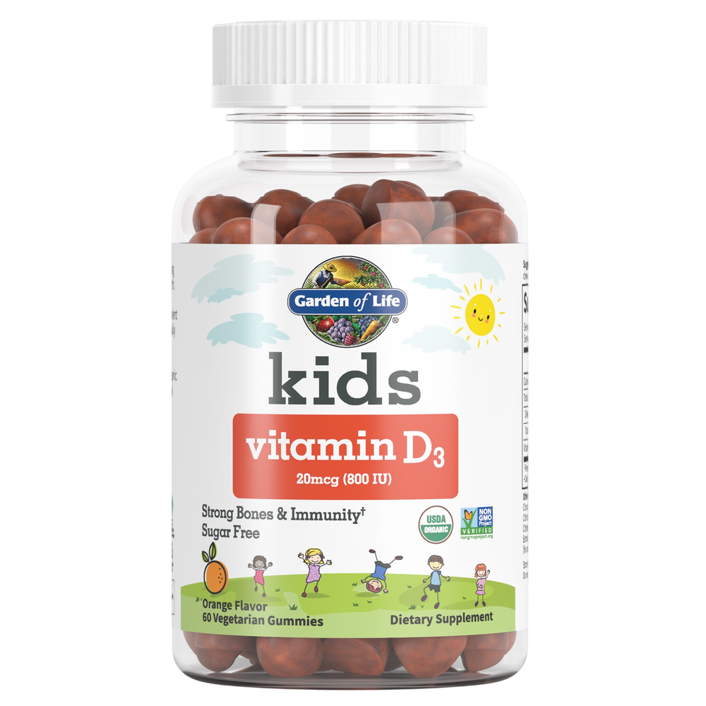 Vitamin D is essential for kids growing bones, teeth, brain and immune health. Kids vitamin D3 gummy is a convenient way to give your kids 100% of their daily Vitamin D. Garden of Life's Kids Vitamin D3 gummy is organic and delicious, without sugar, artificial flavors, toxic pesticides or GMOs.