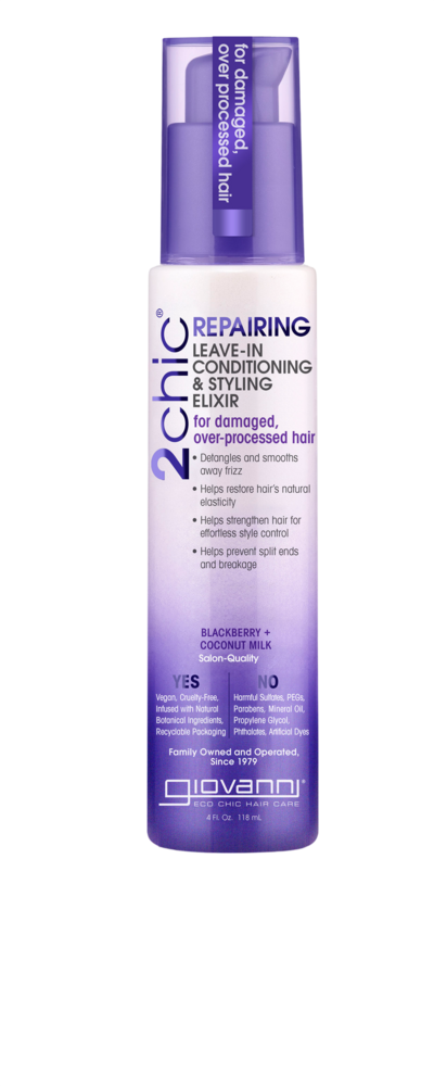 2chic® is to...repair and rejuvenate. Strengthen your hair with Giovanni's exclusive Dual Repairing Complex, an essential blend bursting with power that combines freshly ripened Blackberries and the sweet, delicate nectar of Coconut Milk. Energize each curly strand by drenching your textured hair in protection and moisture, securing tresses from damage. No more dry or unruly hair. It looks and feels flawless and smooth as a finishing product.