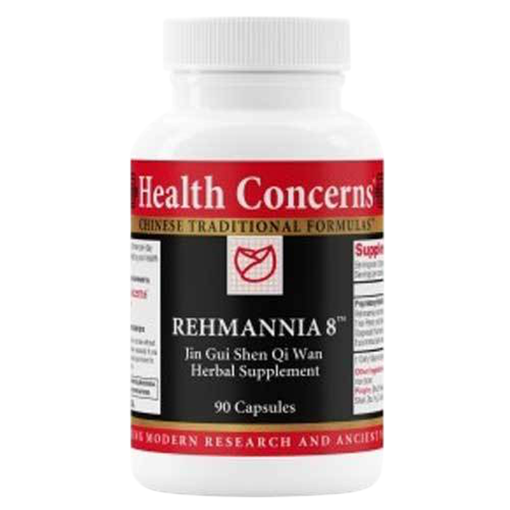 Rehmannia (cooked) root (shu di huang), Poria sclerotium (fu ling), Moutan root bark (mu dan pi), Dioscorea root (shan yao), Cornus fruit (shan zhu yu), Alisma rhizome (ze xie), Eucommia bark (du zhong), Cinnamon bark (rou gui)