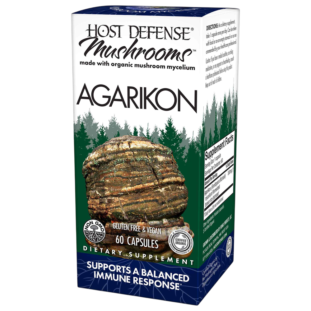 Host Defense® Agarikon Capsules use activated, freeze-dried, Certified Organic mycelium, with a full spectrum of constituents: polysaccharides (beta glucans, arabinoxylane, glucose, xylose, galactose and mannose), glycoproteins, ergosterols, triterpenoids and other myco-nutrients, which are essential for Supporting Natural Immunity.*