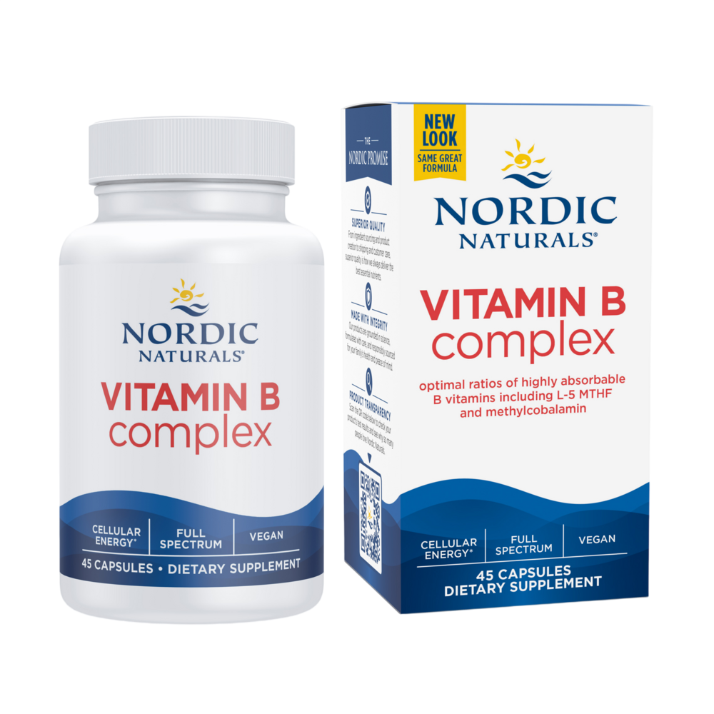 Delivering physiologically meaningful doses of eight highly absorbable and water-soluble B vitamins, Nordic Naturals Vitamin B Complex supports daily cellular operations and helps optimize important metabolic activities throughout the body.* In order to take part in chemical reactions and support enzymes responsible for essential bodily functions, B vitamins must exist in coenzymatic forms. This B complex provides B vitamins in biologically accessible coenzyme forms—including 5-MTHF, methylcobalamin, P5’P, and R5’P—for greater absorption and usability to help meet the daily cellular maintenance needs of a diverse range of individuals.*