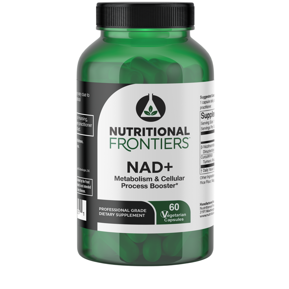 NAD+ by Nutritional Frontiers is ideal for patients focused on energy restoration, metabolic efficiency, healthy aging, and neurological resilience. This formula is designed to complement protocols focused on mitochondrial support, detoxification, immune modulation, and metabolic repair.NAD+ is a targeted formula designed to support mitochondrial function, healthy aging, and cellular metabolism through advanced nutrient delivery. This product combines 250 mg of ß-Nicotinamide Adenine Dinucleotide (NAD) with 250 mg of CurcuWIN®, a highly bioavailable turmeric extract standardized to curcuminoids. Together, these ingredients promote oxidative metabolism, support DNA repair mechanisms, modulate inflammatory signaling, and enhance cellular resilience to age-related stress. This synergistic formula is ideal for patients seeking metabolic restoration, cognitive support, or anti-aging interventions backed by emerging clinical science.ß-Nicotinamide Adenine Dinucleotide (NAD)
