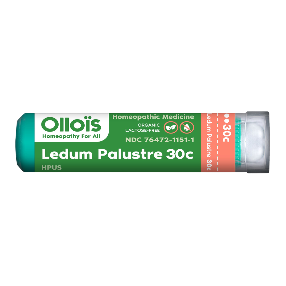 Homeopathic. Ollois organic certified and lactose free Ledum Palustre 30C is traditionally used for: puncture wounds, stings and bites, and black eyes.†