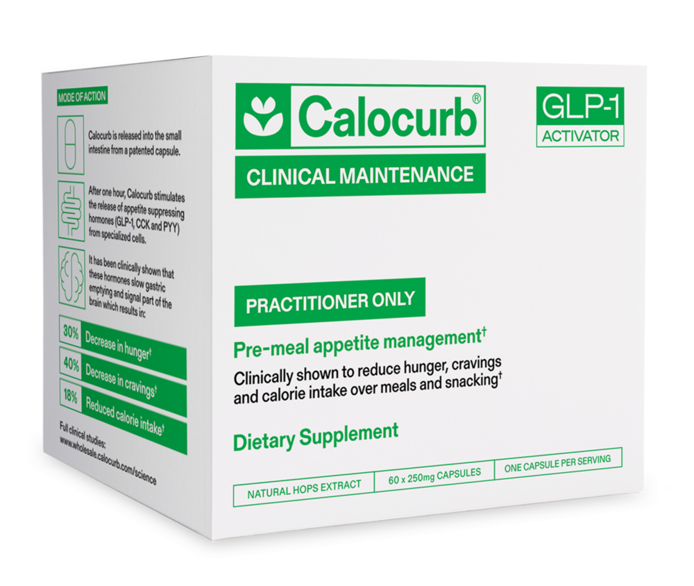 Calocurb CLINICAL is a practitioner-exclusive supplement that supports appetite management by working with the body's natural hormonal signals.* It features Amarasate, a clinically studied extract of New Zealand bitter hops, delivered in a delayed-release capsule designed to reach the small intestine, where it activates bitter taste receptors. This triggers the release of key satiety hormones, including GLP-1, CCK, and PYY, which work together to reduce hunger, cravings, and caloric intake.* Fast-acting and plant-based, Calocurb CLINICAL offers a targeted, science-driven approach to supporting healthy weight management.*