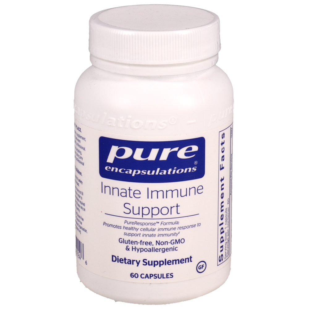 The PureResponse™ formula Innate Immune Support is designed to promote cell- mediated immune response, including NK cell and macrophage activity. Innate Immune Support may be indicated for enhancement of natural defenses and mucosal health. Astragalus contains a variety of active constituents, including saponins and flavonoids, that contribute to its long tradition of immune and cytokine balance support. In vitro and animal studies suggest that astragalus supports NK cell activity, as well as IgA and IgG levels in serum, key antibodies that play a critical role in mucosal immune defense. The formula also includes clinically researched andrographis extract standardized for andrographolide and other bioactive diterpene lactones. Each batch is biologically standardized using the lipoxygenase inhibition assay to ensure efficacy. In a randomized, double-blind, placebo-controlled study, supplementation with 200 mg of AP-Bio® Andrographis for five days promoted immune function and supported respiratory comfort. In vitro assays suggest it helps modulate IL-1, IL-6 and MCP-1 to support macrophage function. Reishi mushroom offers a rich source of polysaccharides to promote cell-mediated immunity. The formula includes both reishi mushroom extract and a unique, highly-purified, reishi mushroom-derived beta 1,3/1,6-D glucan extract.*