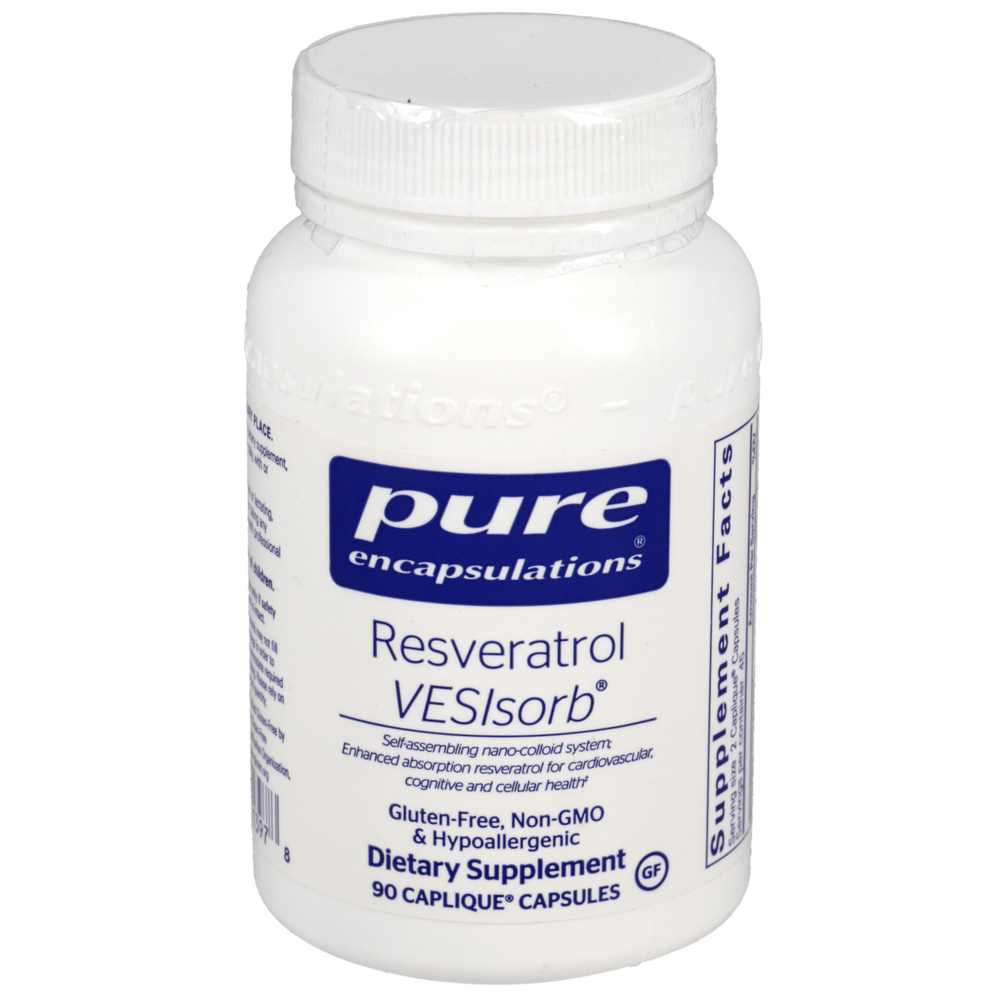 If pregnant or lactating, consult your physician before taking this product. It is recommended to use resveratrol cautiously in patients with hormonal disorders and those using estrogen therapy, as resveratrol may act as either an estrogen agonist or estrogen antagonist. Consult your physician for more information.Resveratrol may be contraindicated with blood thinning medications. Consult your physician for more information.Caplique Capsule is a registered trademark used by Pure Encapsulations under license. Each Caplique® Capsule is preserved with a nitrogen bubble, which may give the appearance of the capsule not being full. Contents may appear cloudy or thick and may settle or separate. Vesisorb is a registered trademark of Source One Global Partners. This product contains resVida®. resVida® is a registered trademark of DSM Nutritional Products, Inc.*These statements have not been evaluated by the Food & Drug Administration. This product is not intended to diagnose, treat, cure or prevent any disease.