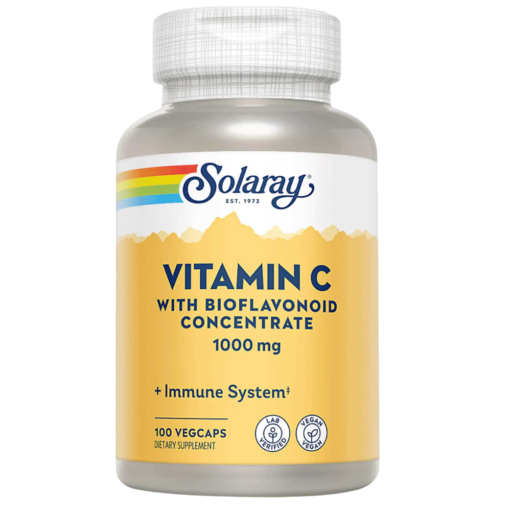 Committed to crafting superior formulations that shine bright above the rest, Solaray Vitamin C with Bioflavonoid Concentrate provides 1,000 mg of vitamin C as ascorbic acid as well as two sun-grown sources: rose hips and acerola cherry, in each 1-VegCap serving. Intended to help enhance the action of vitamin C and to provide additional skin, hair, and nail support, we also include a powerful bioflavonoid concentrate from citrus.