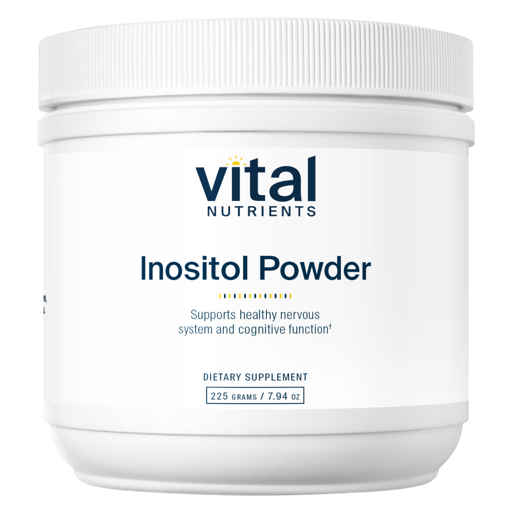 Inositol is a compound found in a wide range of tissues, with higher concentrations in the heart and brain. Inositol Powder may be used to help support and maintain positive mood.* It promotes healthy neurotransmitter metabolism and helps reduce daily stress and occasional anxiety.* Inositol Powder may be beneficial in the transport of cholesterol out of the liver to help maintain already normal-range cholesterol levels.* It may also help maintain healthy blood sugar levels and ovarian function.* Vital Nutrients’ inositol supplement is offered in a powder form which readily dissolves in water and has a slightly sweet taste.*