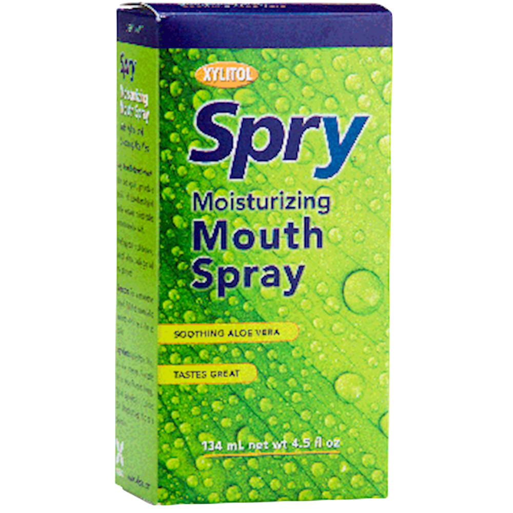 Spry Moisturizing Mouth Spray has been specially formulated to soothe and moisturize the tissues in the mouth & throat. With a refreshing, natural spearmint flavor and rich in sweet-tasting xylitol. Spry cools and hydrates the mouth while sweetening the breath.