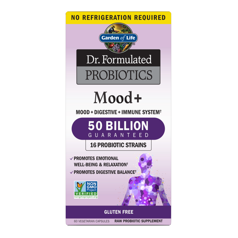 About Dr. Perlmutter: David Perlmutter, M.D., is an expert in the human microbiome, a board-certified neurologist, Fellow of the American College of Nutrition, America’s brain-health expert and #1 New York Times best-selling author. Dr. Formulated Probiotics Mood + is a unique probiotic formula with clinically studied strains to support mood and includes organic ashwagandha and organic Alaskan blueberries. Just 2 capsules a day support emotional health and well-being.* Emerging science is showing a link between gut and brain health. Dr. Perlmutter created this unique formula with clinically studied probiotics L. helveticus R0052 and B. longum R0175 in the amount clinically shown to support mood, emotional well-being and relaxation. Mood + also has 350mg of organic ashwagandha and organic Alaskan blueberries to support stress management.* Dr. Formulated Probiotics Mood+ 50 Billion CFU Benefits: • Supports emotional well-being & relaxation* • Supports digestive balance* • 50 billion CFU; 16 probiotic strains • Contains clinically studied L. helveticus R0052 and B. longum R0175 to support emotional well-being* • Contains 350mg of organic ashwagandha and organic Alaskan blueberries to support stress management* • Contains Acacia Prebiotic Fiber • Made with over 70% organic ingredients—certified by QCS An innovative formula with clinically studied probiotics, organic ashwagandha and organic blueberries to support a positive mood and relaxation.*