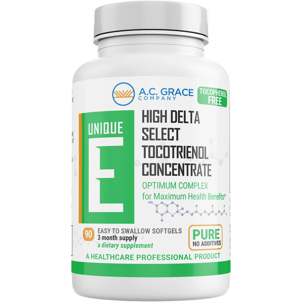 The UNIQUE E® brand provides high bioactivity in combination with the synergistic properties of Vitamin E homologs. Each softgel contains 125 milligrams of a pure, select tocotrienol concentrate with a minimum of 112mg (90%) delta (δ)-tocotrienol and the added benefits of gamma (γ)- tocotrienol. UNIQUE E® provides the optimum δ:γ ratio of tocotrienols to deliver the maximum health benefits.*