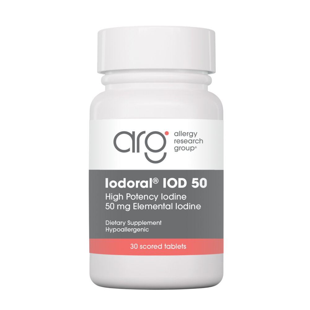 Iodoral® provides a precise, tablet-form alternative to Lugol solution, delivering molecular iodine and potassium iodide to support optimal thyroid hormone synthesis, energy metabolism, antioxidant protection, and resilience to environmental halogen exposure.* Modeled after iodine intake levels in traditional diets, Iodoral® helps maintain endocrine and immune system balance across multiple organ systems.* ARG offers Iodoral in 6.25 mg, 12.5 mg, and 50 mg strengths.