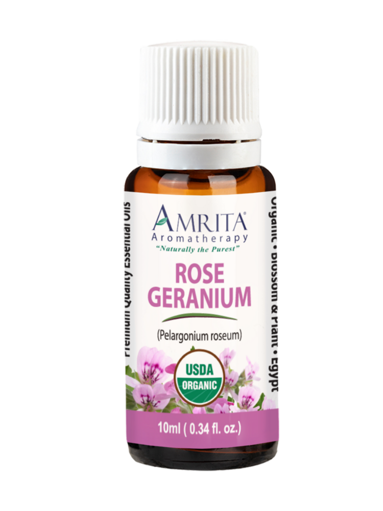 Geranium Oil - Certified Organic Rose Geranium Essential Oil radiates a floral sweetness like dewy, fresh-cut roses warming in the morning sun. This beneficial oil clears and relieves stress.