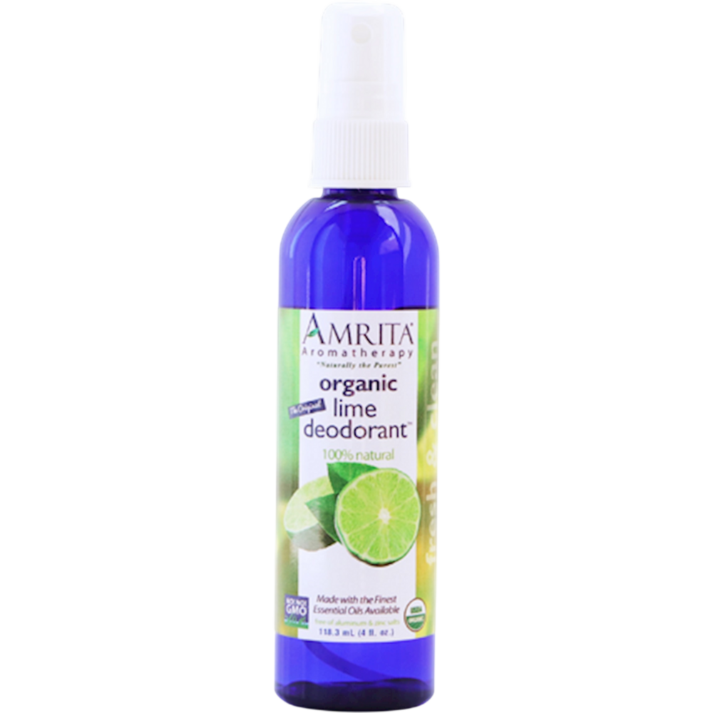 Amrita's Certified Organic Lime Deodorant minimizes and neutralizes body odors without the use of aluminum salts and other metallic compounds. The formulation contains no parabens! No artificial fragrances! It is colorless and made with certified organic essential oils of only the highest quality. Lime is a natural detoxifier. Siberian Fir helps keep you feeling fresh. Peppermint is invigoratingly fresh and cooling. Lasts all day, and it really works!! • Fresh and Clean aroma • No pore-clogging!