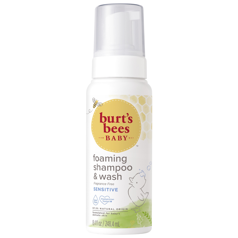 Make bath time a breeze with Burt's Bees Baby™ Sensitive Foaming Shampoo and Wash. Fragrance-free shampoo and wash from Burt’s Bees Baby™ uses a natural, plant-based cleansing complex to gently clean your baby’s sensitive skin. This tear-free shampoo makes bath time fun, and the foaming formula makes it great for bubble baths as you fill up the tub. Specially formulated for sensitive skin, this baby wash gently cleans while leaving baby’s skin silky soft and healthy.