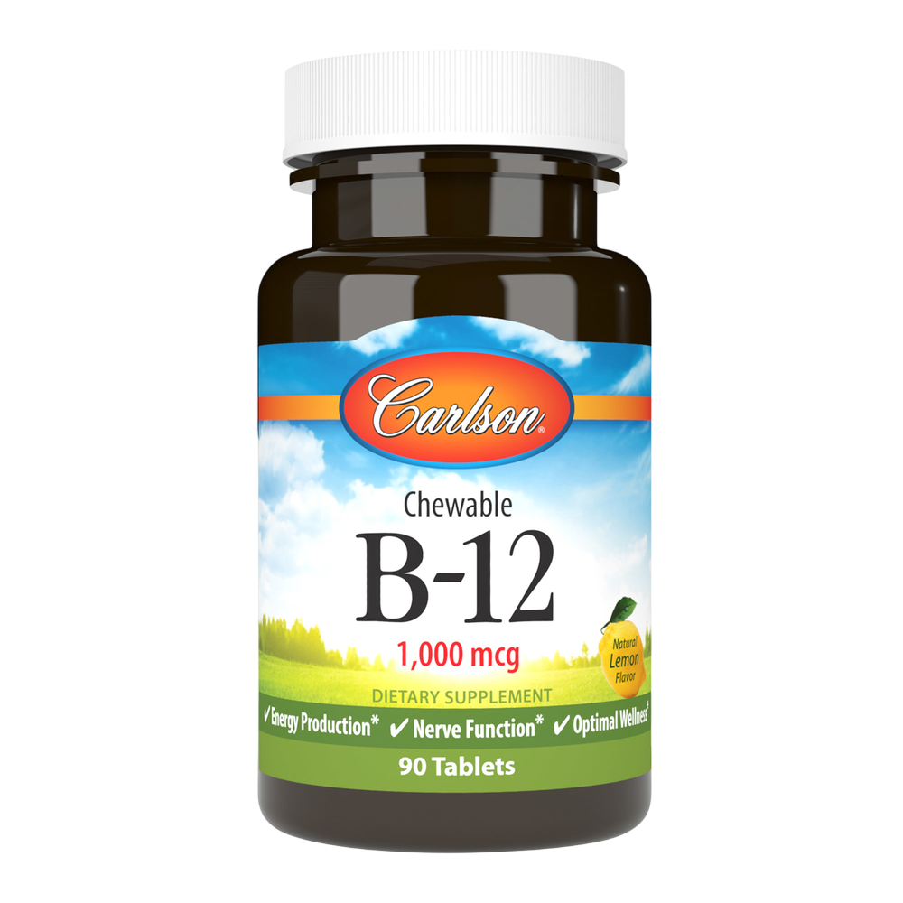 Chewable B-12 is found in meat, dairy, and eggs, which is why vegetarians, and especially vegans, are more susceptible to vitamin B-12 deficiency. Chewable B-12 also becomes more important as we age, since our ability to absorb this important nutrient decreases. Get your daily dose with Carlson Chewable B-12 lemon-flavored tablets.