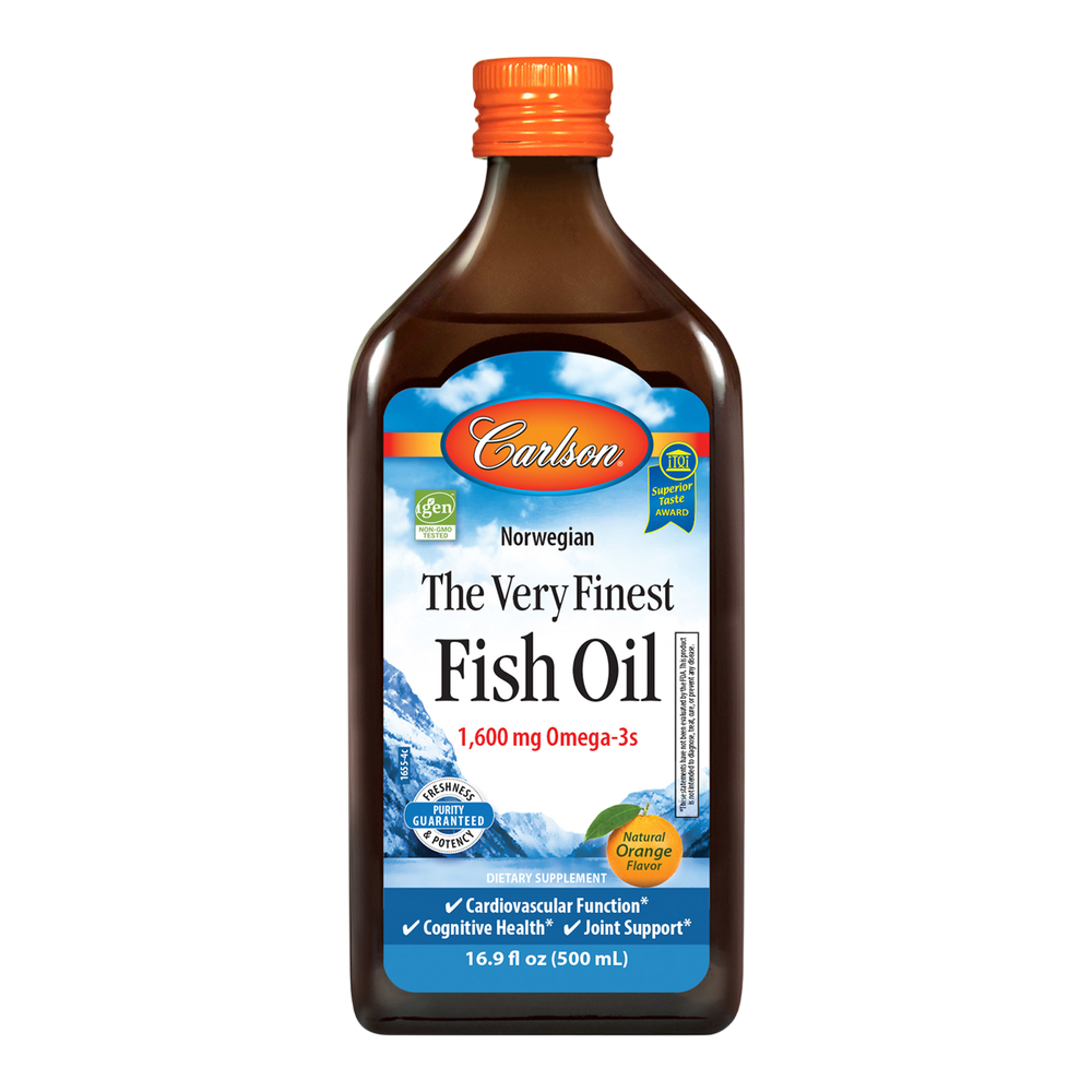 The Very Finest Fish Oil™ in orange flavor has received numerous awards for its taste and quality. To ensure maximum freshness, The Very Finest Fish Oil™ is closely managed from sea to store. Carlson Labs sources the highest quality, deep, cold-water fish using traditional, sustainable methods. The Very Finest Fish Oil™ is then bottled with a touch of vitamin E and is given a nitrogen flush to remove oxygen and help prevent oxidation. Each teaspoon of The Very Finest Fish Oil™ provides 1,600 mg of omega-3s, including EPA and DHA, which support heart, brain, vision, and joint health.* Like all Carlson omega-3s freshness, potency, and purity are guaranteed.
