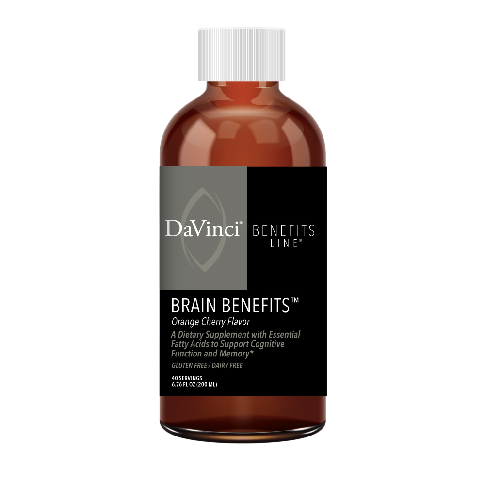 Age-old wisdom tells us that a diet high in fish is healthy. In fact, eating fish every week can improve brain performance and reduce the risk of cognitive decline.* Some experts think that a diet high in fish is why the human brain is so large and intelligent. The health-promoting benefits of fish are primarily due to the omega-3 fatty acids, EPA and DHA.* Omega-3 fatty acids are present in every cell of the body. Unfortunately, the modern diet is loaded with unhealthy and inflammatory omega-6 fatty acids. Too many omega-6 fats can push omega-3s out of the cell, leading to forgetfulness, heart issues, and joint discomfort.*Support Your Brain Function with Brain Benefits™*Omega-3 fatty acids are super concentrated in the brain- our fattiest organ. They can do wonders for cognitive function, especially memory, focus, and mood.* DHA and EPA help the brain learn new things, with less effort.* They may even change the brain’s structure, making space for more brain cells.* Omega-3s protect the brain from wear and tear.* This means support at all ages for thinking clearly and quickly. DHA and EPA aren’t just great for the brain, they promote heart health, comfortable joints, and beautiful skin, nails, and hair.* You may look, feel, and perform at your best.High-Quality, Delicious, and Convenient DHA and EPA Supplement Brain Benefits™ has a delightful cherry orange flavor. Sweetened with monk fruit, you can easily add it to food or drinks. It boasts high levels of DHA and EPA to support the brain, heart, and joints.* Made
