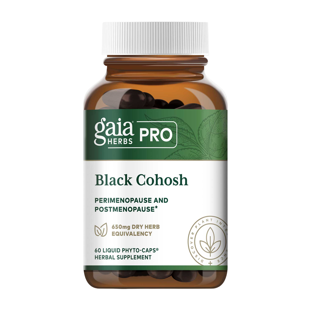 Black Cohosh has a long history of use — now backed by scientific evidence — for helping support a healthy female reproductive system.* Each serving of Gaia’s Black Cohosh Liquid Phyto-caps contains a guaranteed 2 mg of active Triterpene Glycosides. Taken as needed, Black Cohosh can help support a woman’s body during natural transitional hormonal states.*