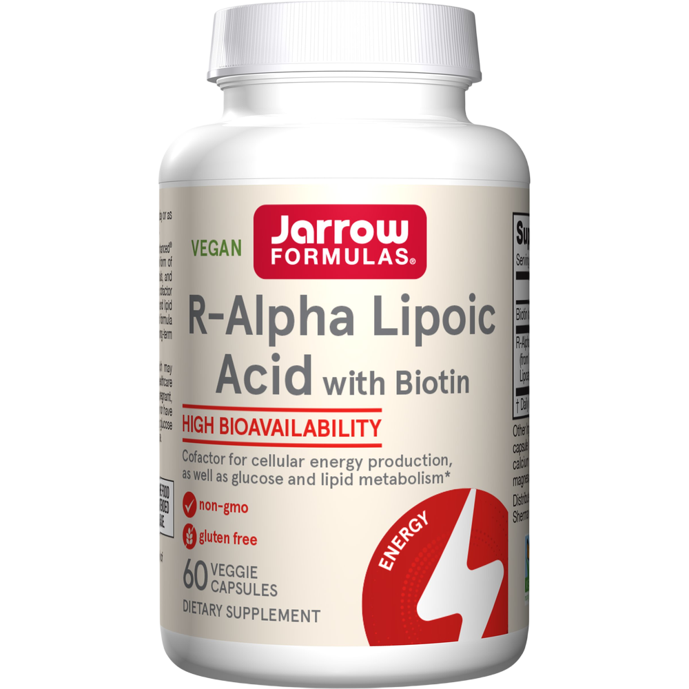 "Jarrow Formulas® R-Alpha Lipoic Acid (Bio-Enhanced® Na-RALA) exhibits high bioavailability and is the form of alpha lipoic acid found naturally in plants, animals, and the human body. RALA is an antioxidant and a cofactor in cellular energy production, as well as glucose and lipid metabolism.* We have included d-Biotin in this formula because it helps to prevent biotin deficiency from long-term alpha lipoic acid use.*"