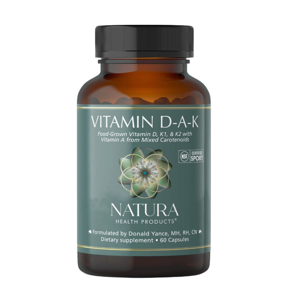 Vitamin D-A-K is a synergistic blend of Naturized® highly bioavailable, food-based forms of vitamins D, A and K. Vitamin D, vitamin K and the carotenoid complex are known for their beneficial pleiotropic influence especially in relation to healthy immune response, cell-cycle functions, and skeletal health. These vitamins also promote a healthy inflammatory response and provide antioxidant activity. Vitamins D and K are found to work synergistically to enhance skeletal health. Regular intake of the carotenoid complex and maintaining optimal serum vitamin D levels correlates with multiple health-protective influences.*