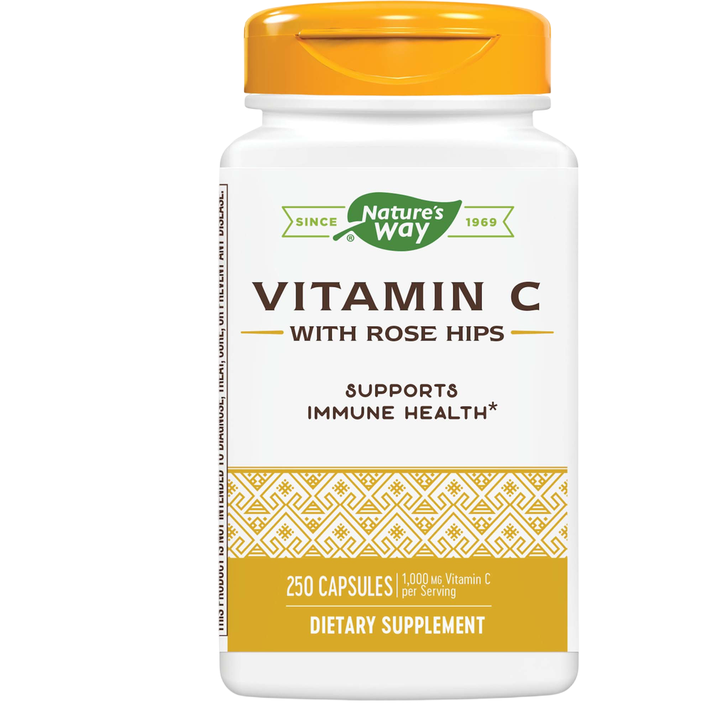 Vitamin C with Rose Hips provides powerful antioxidant protection, supports immune function and strengthens collagen for healthy skin.*