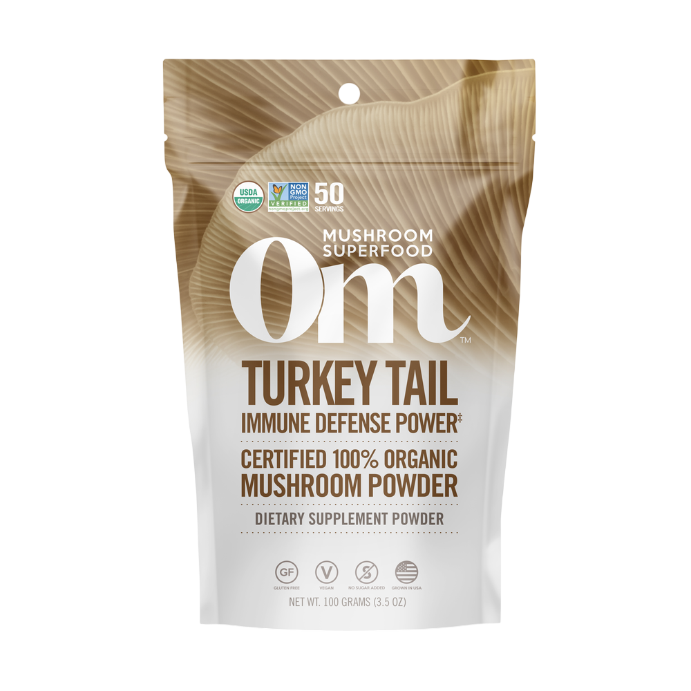 Holistic defense. Immune support. Elevate your wellness with one of the most researched of all medicinal mushrooms known for its powerful polysaccharides (immunity activators). The beta glucans and other nutrients found in Turkey Tail support immune health. Om Turkey Tail provides Organic Whole-Food Support: • Tremendous research related to enhancing immune system* • One of the most researched of all medicinal mushrooms • Powerful immunite support*