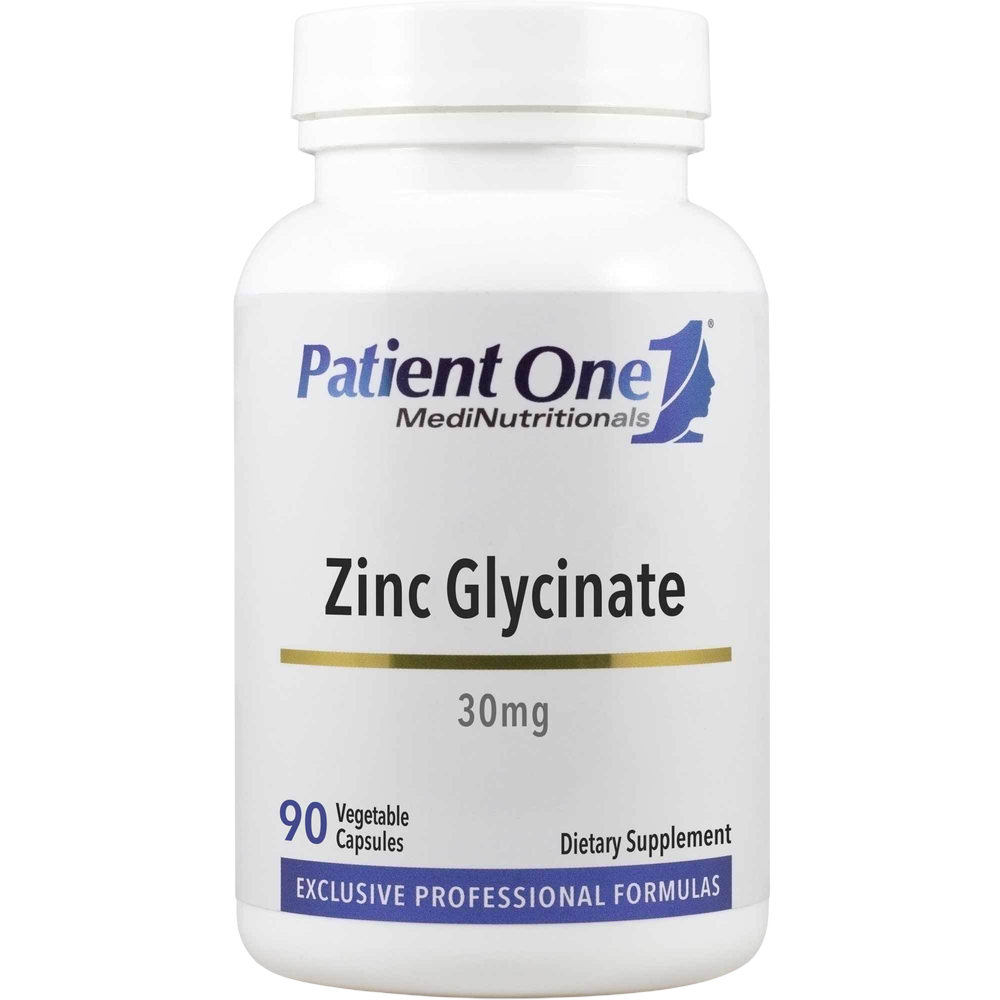 Because zinc is ionized in the gut prior to absorption, Patient One supplies 30mg of zinc as Zinc Bisglycinate, a totally reacted, nutritionally functional zinc amino acid chelate. In this proprietary TRAACS® formulation, zinc is coupled with two glycine molecules to facilitate its absorption across the intestinal wall and reduce interference from phytates and competing minerals. This form has been shown to be readily absorbed by the body.