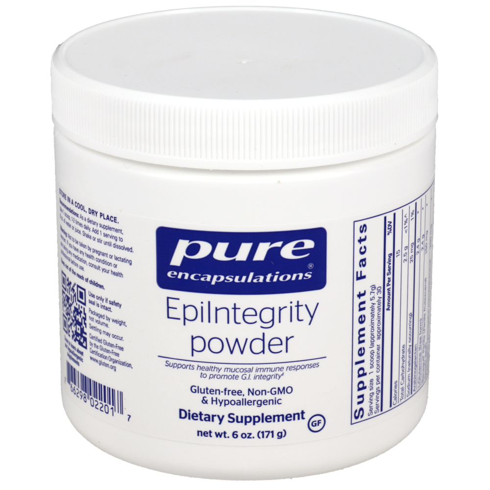 EpiIntegrity powder is designed to promote healthy modulation of mucosal immune response to support gastrointestinal (G.I.) integrity and function. Th2 modulation may be indicated when addressing immune balance in the G.I. tract. L-glutamine is an essential fuel for enterocytes (the cells that line the small intestine and colon), supporting cellular renewal, glutathione production and healthy, everyday tissue repair, while promoting healthy villous function. Arabinogalactan is a prebiotic fiber found in high concentrations in North American larch trees. It has been shown to increase the concentration of beneficial bacteria, such as Bacteroidetes and Faecalibacterium prausnitzii.
