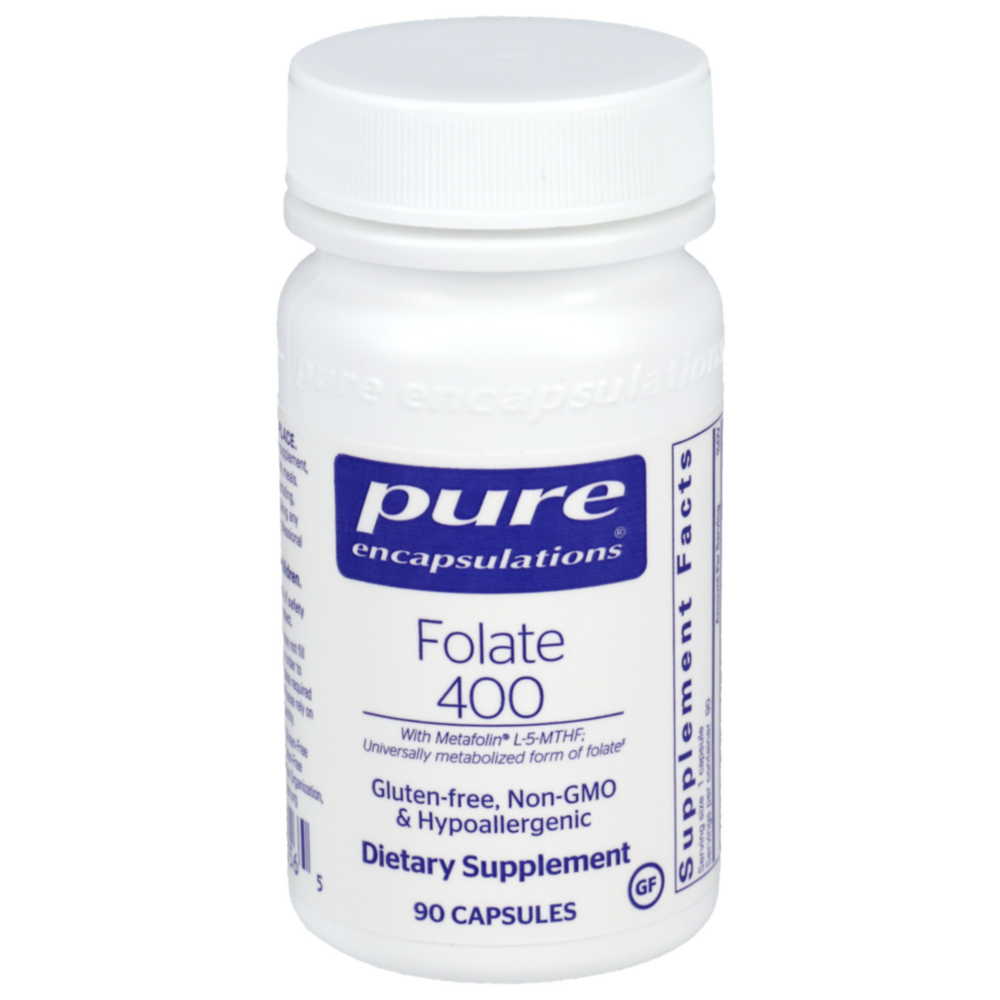 Folate 400 provides 400 mcg per capsule of Metafolin® L-5-methyltetrahydrofolate (L-5-MTHF), the naturally occurring, universally metabolized form of folate.