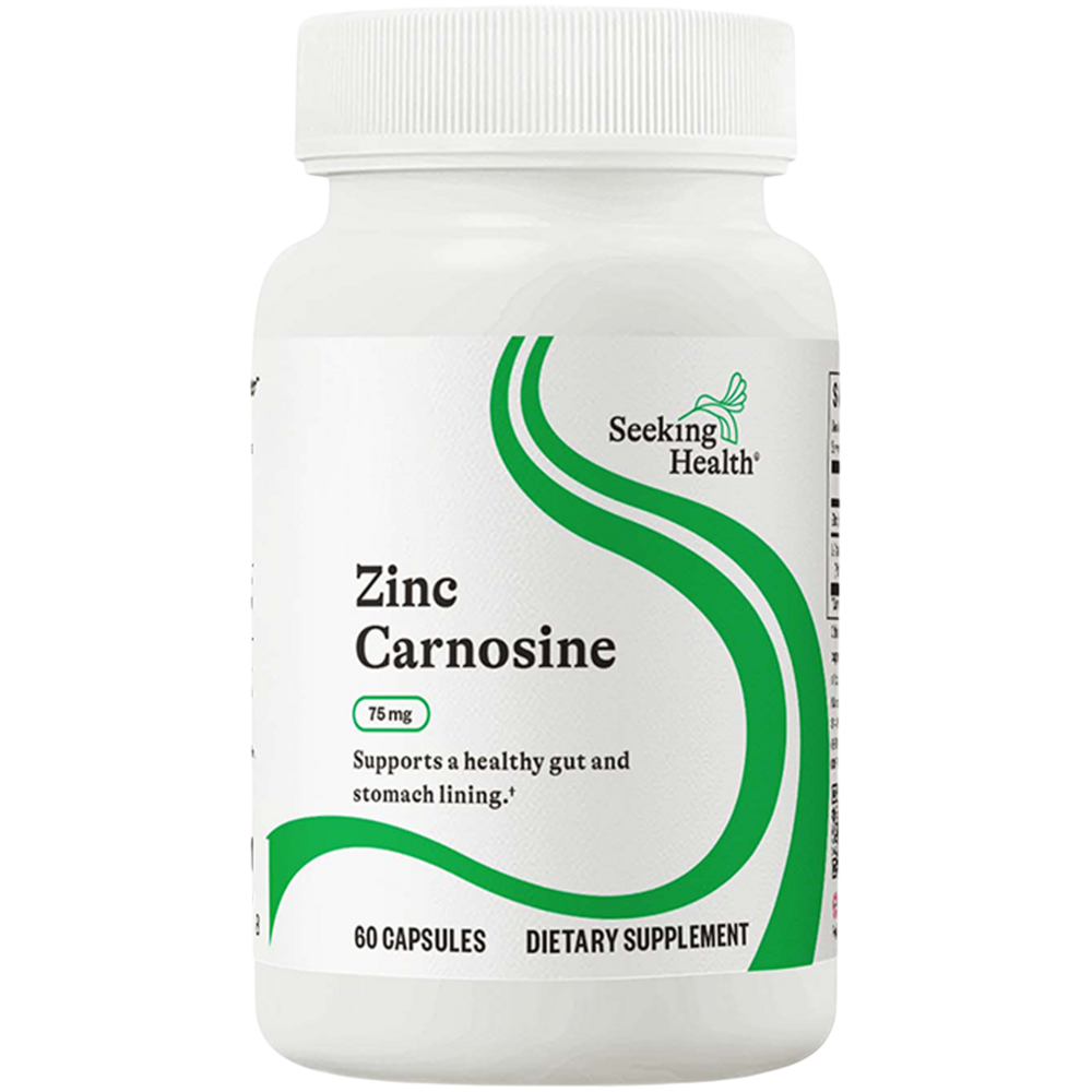 Zinc Carnosine by Seeking Health provides 16 mg of zinc (from zinc L-carnosine) per vegetarian capsule. Zinc Carnosine is designed for those desiring a natural approach to supporting the gastrointestinal lining. This product may be combined with high-quality probiotic formulations for a more comprehensive approach to gastrointestinal health. The combination of zinc carnosine and L-glutamine is also popular for supporting healthy intestinal mucosa. Consider adding L-Glutamine Powder to your regimen for additional support.* • May help support healthy intestinal mucosa* • May help support a healthy immune system* • May help support digestive health and normal nutrient absorption* • May help support cellular integrity, especially in the digestive tract*