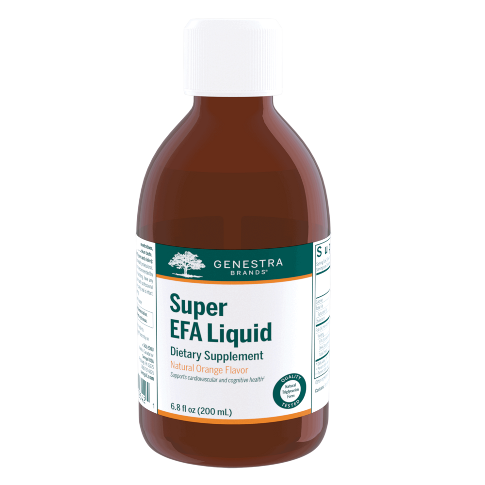 Super EFA Liquid provides 820 mg of EPA and 590 mg of DHA per serving. It has an EPA:DHA ratio of 1.3:1, and helps to support healthy lipid metabolism and cardiovascular health. In a placebo-controlled clinical trial of 312 healthy adults, daily supplementation with 1,800 mg of EPA and DHA (in a 1.5:1 ratio) for one year supported healthy lipid levels. Super EFA liquid provides 1,410 mg of combined EPA and DHA per teaspoon. Essential fatty acids have many other health benefits, including supporting brain health and cognitive function.*