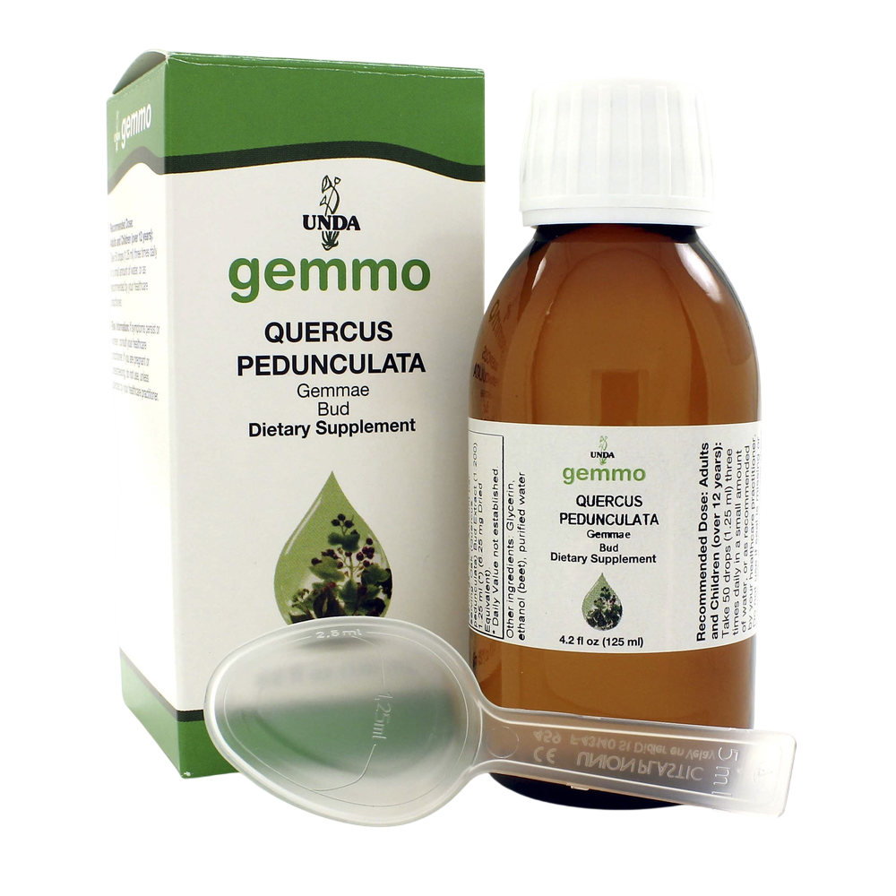 Homeopathic. Gemmotherapy uses the extracts of fresh buds, young shoots, rootlets, or saps from developing plants, where the plants life essence is at its peak in the young growths. UNDA Gemmotherapy remedies are prepared in a natural glycerin and organic ethanol medium, which is then filtered and potentized at a 1/10th dilution (1X Hahnemannian) in a pure water, natural glycerin and organic ethanol medium. These complex remedies are macerated for increased patient compliance. This methodology captures the most complete set of highly-concentrated active constituents necessary for tissue regeneration, favorable growth development and essential drainage properties. UNDA Gemmotherapy facilitates Biotherapeutic Drainage and is an excellent adjunct to the UNDA Numbered Compounds.†
