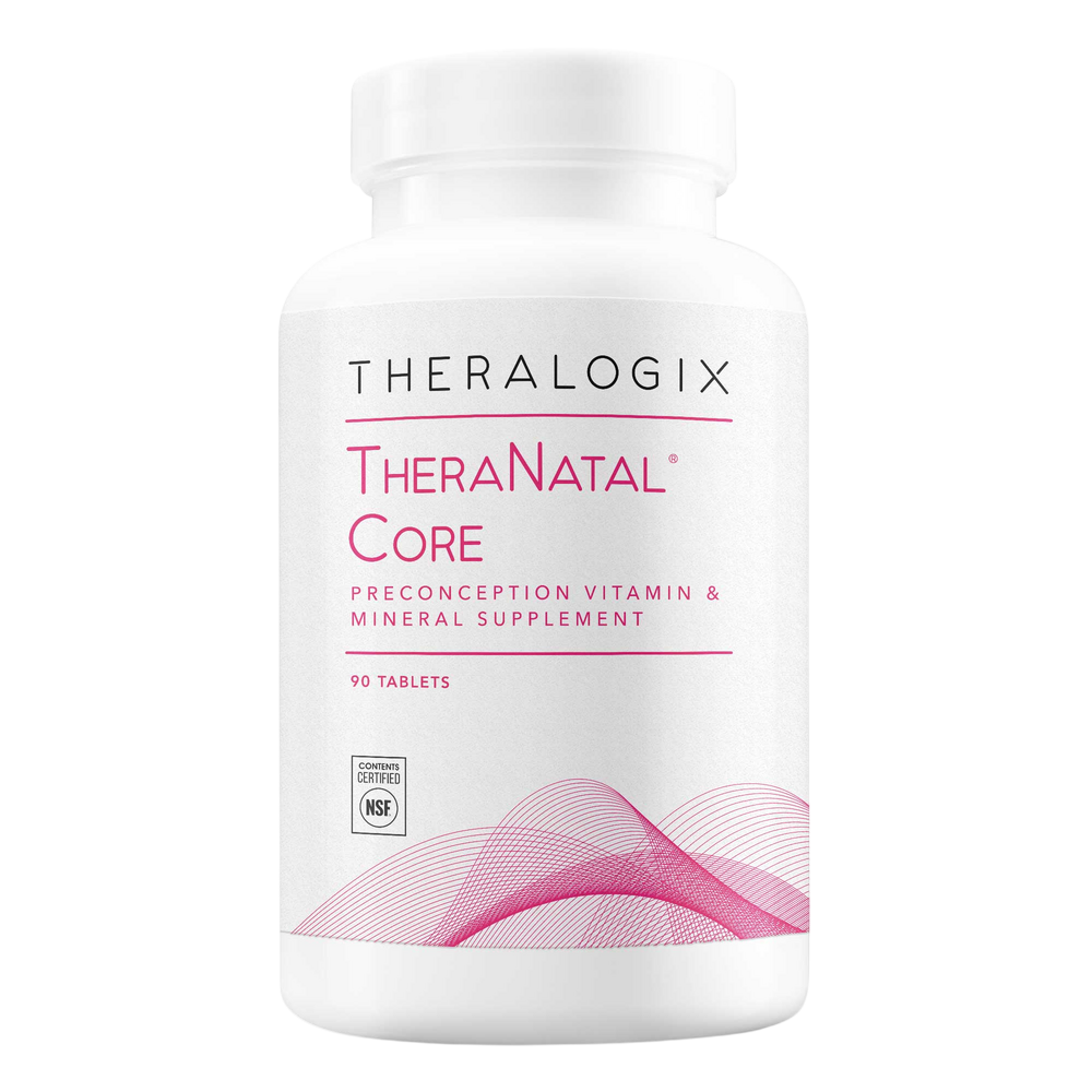 TheraNatal Core is your pre-prenatal. It helps prepare your body for pregnancy with healthy doses of folate, vitamin D, choline, and other important fertility-focused nutrients. What’s even better – this once daily multivitamin supports your nutrition needs throughout the first trimester, too.