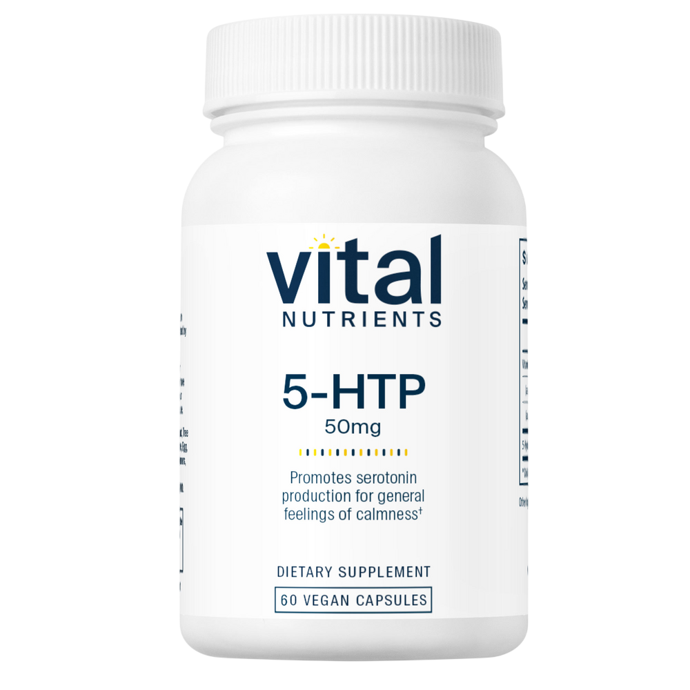 5HTP (5-Hydroxytryptophan) is made in the body from L-tryptophan, and can be converted to serotonin. 5-HTP readily crosses the blood-brain barrier, and promotes serotonin levels in the brain which help support healthy functioning of the sleep/wake cycle and positive mood.* Along with emotional well-being, satiety may also be affected in a positive manner.* Vital Nutrients 5HTP is naturally derived from the seeds of the Griffonia simplificolia plant.