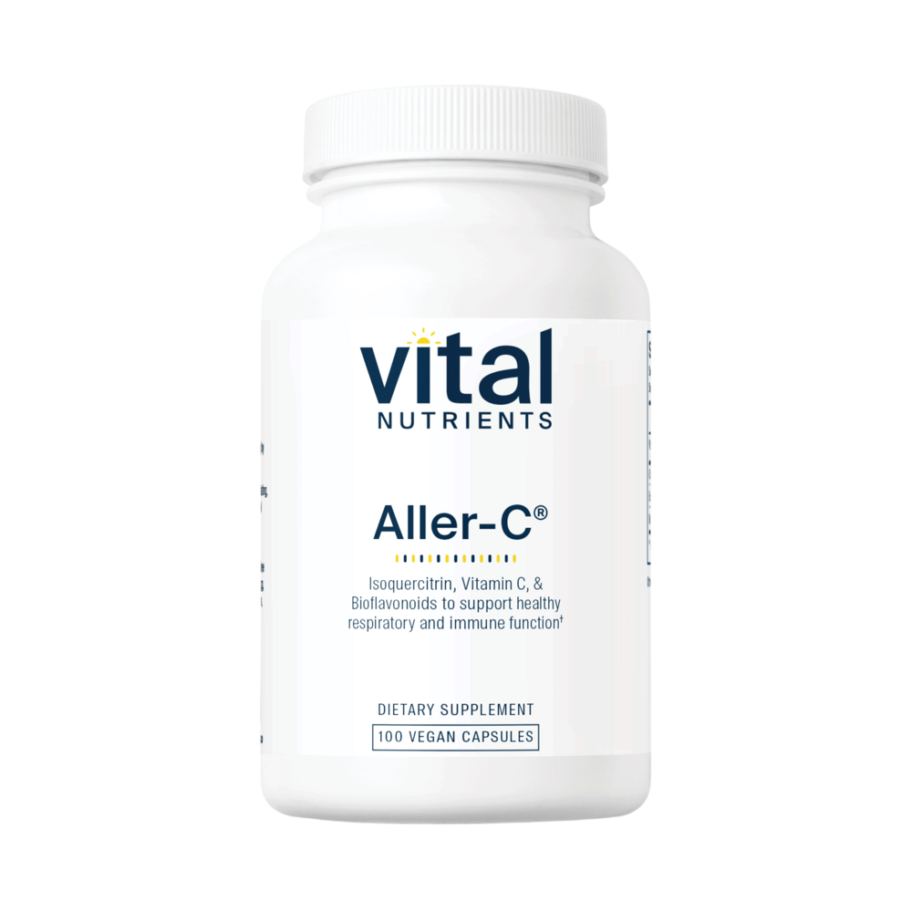 Best-selling supplement Aller-C with Isoquercitrin, Vitamin C, Bromelain, and Bioflavonoids to Support Healthy Respiratory and Immune Function* is a potent and effective combination formula designed to help maintain normal respiratory and sinus function.* Aller-C features Isoquercitrin, a clinically studied nutraceutical offering the benefits of quercetin with superior absorption and bioavailability, to help promote cellular antioxidant defenses.* Aller-C’s combination formula also includes Vitamin C for immune support, Citrus Bioflavonoids to help maintain capillary stability, and Bromelain to promote healthy inflammatory balance.* This supplement can be used for maintaining and supporting the proper levels of enzymes and physiological factors necessary for normal respiratory and sinus function during seasonal challenges.*