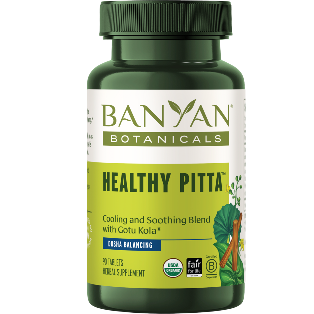 For those with a dual constitution that includes pitta or a tridoshic constitution, it is an excellent formula for pitta season, which in most parts of the world is summer. The heat and brightness of summer tends to aggravate pitta. Healthy Pitta contains herbs that cool the system, helping the body to remain healthy throughout the season. According to Ayurveda, middle age is the pitta stage of life, a time when responsibilities, stress, and the intensity of daily life can be at their peak and further provoke pitta. Healthy Pitta helps calm the mind, soothe fiery emotions, and support a cooler, more balanced temperament.*