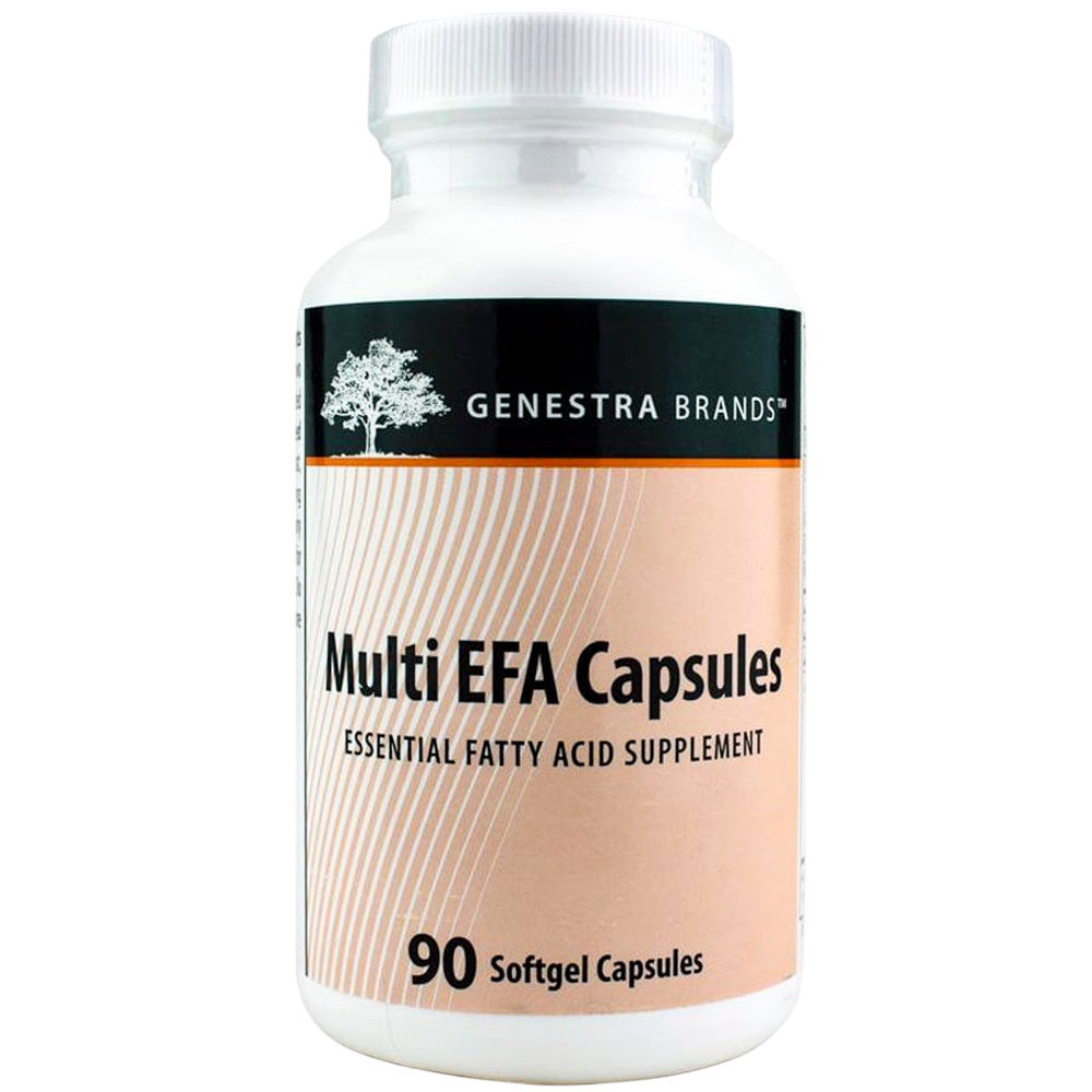 Multi EFA Capsules contain a unique blend of fish, flax and borage seed oils. Fish oils provide omega-3 fatty acids that support brain, eye and cardiovascular health. DHA is the most abundant omega-3 fatty acid in the brain, and it provides support for cognitive and ocular health. Supplementation with fish oils may support neural functioning in the hippocampus, a region of the brain associated with memory. Flax and borage seed oils provide essential fatty acids (EFA), including ALA, LA, and GLA, that further maintain optimal health. EFA, especially LA and GLA, promote skin health by supporting epithelial cell function, maintaining the integrity of the epidermal barrier, and helping maintain water and electrolytes in the skin. LA accounts for approximately 12% of the total fatty acid content of the skin.*