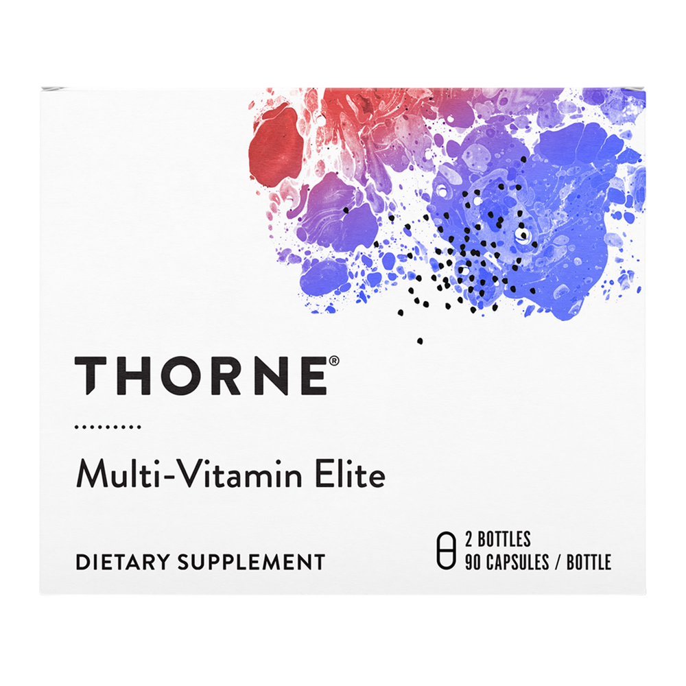 Thorne's Multi-Vitamin Elite is NSF Certified for Sport®. It provides active individuals who have high-performance nutritional regimens with essential nutrients in two complementary formulas.* Both formulas contain a full complement of vitamins and minerals in their most absorbable forms.* Vitamin D promotes strong bones and healthy immune function.* B vitamins support heart, blood vessel, and nerve health.* Vitamins K1 and K2 contribute to bone and blood vessel health.* AM Formula: Promotes energy production*• Contains two specially formulated phytosomes: Meriva® and green tea • Meriva provides relief from occasional joint and muscle soreness* • Meriva supports a healthy inflammatory balance and joint mobility* • Green tea phytosome promotes fat metabolism* • Flavonoids in green tea promote cellular energy production* • Both curcumin and green tea have significant antioxidant properties that support healthy aging* PM Formula: Enhances rest and recovery*• Contains Relora®, a proprietary blend of Magnolia and Phellodendron extracts • Relora helps down-regulate evening cortisol levels that can cause occasional anxious feelings and interfere with weight management efforts* • Relora has been shown to support satiety and, coupled with the extra magnesium, supports restful sleep* • In one trial, athletes who took Multi-Vitamin Elite P.M. fell asleep faster and achieved better sleep quality* Because an athlete needs to know that their nutritional supplements are trustworthy and compliant, all batches of NSF Certified for Sport® products are tested for compliance with label claims and to ensure the absence of more than 200 substances – including stimulants, narcotics, steroids, diuretics, beta-2 agonists, and masking agents – banned by many major athletic organizations.