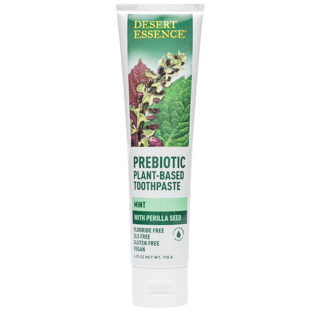 Prebiotic Plant Based Toothpaste - Mint Prebiotic plant-based toothpaste formulated with Inulin, Perilla Seed and Aloe. Provides botanical care for teeth and gums, neutralizes odor-causing bacteria, and freshens breath with a medley of mints. This refreshing carrageenan-free botanical toothpaste provides whole mouth care with the power of plants. Prebiotic powerhouses, Inulin and Chicory Root, cultivate a healthy mouth microbiome to help keep odor-causing bacteria at bay. Perilla Seed and pure Australian Tea Tree Oil neutralize bacteria, while plant oils and extracts purify your teeth and gums. Finally, a medley of Peppermint, Wild Mint and Spearmint leaves your breath as fresh as can be.