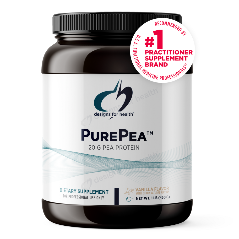Disclaimer: ††An IPSOS 2023 survey among US functional medicine practitioners, in an average month, Designs for Health is their personally most trusted practitioner supplement brand, meaning a brand that is sold by healthcare practitioners in their office. ††An Ipsos 2023 study among a random sample of 160 functional medicine practitioners including Doctor's of Osteopathic Medicine, Pharmacists, Acupuncturists, Athletic Trainers, Personal Trainers, Fitness Trainer/Coaches, Chiropractors, Integrative Medicine Specialists, Naturopathic Doctor, Homeopaths, Medical Doctors, Physical Therapists, Nurse Practitioner/Physician Assistants, Registered Nurses, Nutritionists, Massage Therapists, Occupational Therapists and Dieticians that are aware of Designs for Health and recommend supplements to their patients. PurePea™ is a delicious, dairy-free, plant-derived protein powdered supplement that offers nutritional protein support, along with other nutritional benefits.* It provides 20 grams of protein in the form of a pea protein isolate derived from non-GMO, North American-grown yellow peas. It is produced with a natural fermentation process that does not use any chemical solvents. PurePea™ does not contain casein, gluten, or lactose, making it ideal for even the strictest vegetarians and vegans, or anyone who is looking for a vegetarian protein with superior digestibility.
