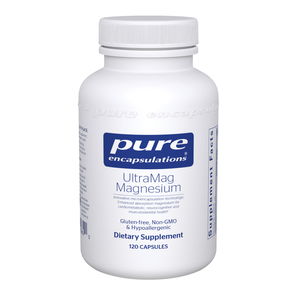 Enhanced-absorption and bioavailability mineral technology UltraMag Magnesium utilizes an innovative microencapsulation technology to enhance the absorption of magnesium. This technology creates a phospholipid bilayer around the mineral that is similar to a liposome, increasing solubility in the gastrointestinal fluids and facilitating absorption across membranes. In a comparative crossover study, magnesium in the Sucrosomial® matrix was compared to other forms of magnesium in human subjects. Twenty-four-hour blood and urinary magnesium measurements indicated superior absorption of Sucrosomial® magnesium compared to magnesium citrate, glycinate, and oxide.* • Exclusive first to market among professional brands • Phospholipid bilayer microencapsulation technology protects mineral in gastrointestinal lumen, increases dissolvability, and easily crosses membranes • Clinically studied • Promotes muscle relaxation, bone and cardiovascular health*• Plays a key role in numerous physiological functions, including nutrient metabolism and energy production* • Supports healthy bone* • Made with hypoallergenic, vegan ingredients